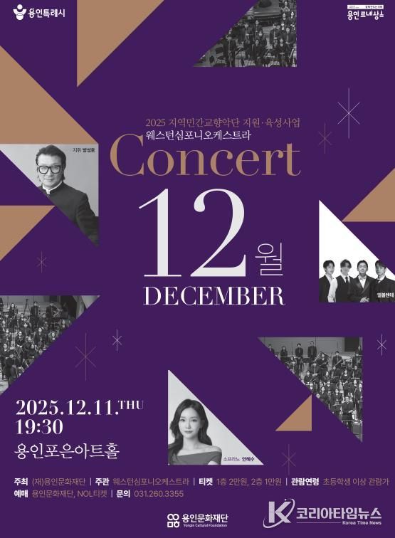 코리아타임뉴스 이아름 기자 | 용인문화재단은 오는 12월 11일 오후 7시 30분, 용인포은아트홀에서 웨스턴심포니오케스트라 '콘서트 ‘12월’' 공연을 개최한다.