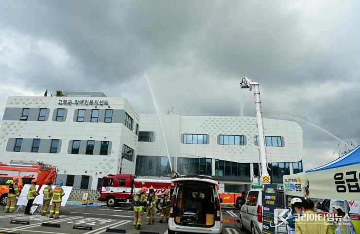 코리아타임뉴스 경북취재본부 | 고령군은 10월 22일 경상북도 장애인종합복지관 고령분관에서 고령군, 고령소방서, 고령경찰서, 의용소방대 등 130여명이 참가한 2025년 재난대응 안전한국훈련을 실시했다.
