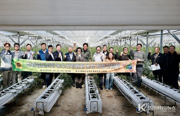 코리아타임뉴스 노승선 기자 | 전라남도의회 농수산위원회(위원장 김문수, 신안1)는 지난 10월 22일 영암군 도포면 방울토마토 재배 시설 원예농가와 시종면 농업근로자 기숙사 신축 현장을 방문하여 현장의 목소리를 청취하고, 농업인들과의 소통간담회를 통해 실효성 있는 지원 방안 마련에 나섰다.