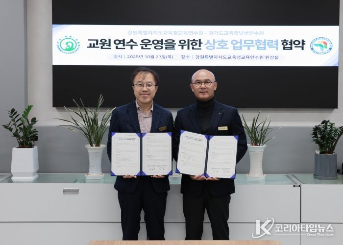 코리아타임뉴스 사회팀 | 경기도교육청남부연수원이 23일 강원특별자치도교육청교육연수원과 교원 연수 협력을 위한 업무협약(MOU)을 체결했다.