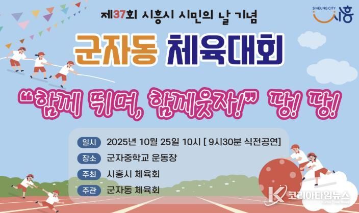 코리아타임뉴스 경기취재본부 | 시흥시 군자동 체육회는 제37주년 시민의 날을 맞아 오는 25일 군자중학교 운동장에서 ‘함께 뛰며, 함께 웃자’ 체육대회를 개최한다.