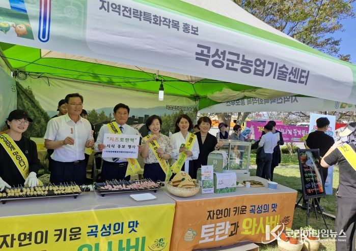 야외홍보부스에서는 관람객이 직접 참여할 수 있는 시식 행사와 이벤트가 진행중이다. 곡성의 대표 작물 토란으로 만든 토란치즈떡, 토란하트떡, 와사비 주먹밥 등을 시식할 수 있으며, 룰렛 이벤트를 통한 경품 증정으로 큰 호응을 얻고 있다. 토란을 비롯한 곡성의 농산물을 친근하게 소개하는 미식체험형 홍보 공간으로 구성되어 관람객들이 자연스럽게 곡성 농산물의 맛과 매력을 느낄 수 있다.