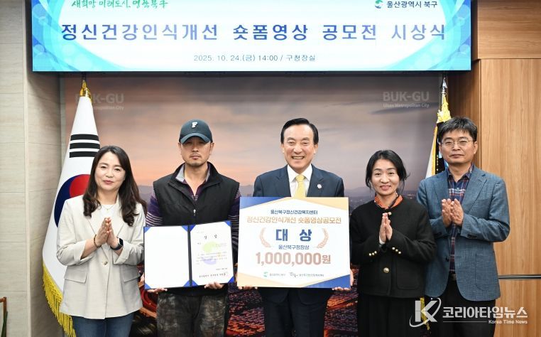 코리아타임뉴스 의료보건팀 | 울산 북구정신건강복지센터는 24일 북구청장실에서 정신건강 인식개선 숏폼영상 공모전 시상식을 열었다.