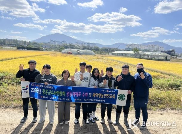 코리아타임뉴스 전남취재본부 | 장흥군은 27일, 장흥군4-H연합회(회장 임선호) 주관으로 장흥읍 행원리에 위치한 식량작물 공동과제포에서 수확 작업과 최종 평가회를 진행했다고 밝혔다.