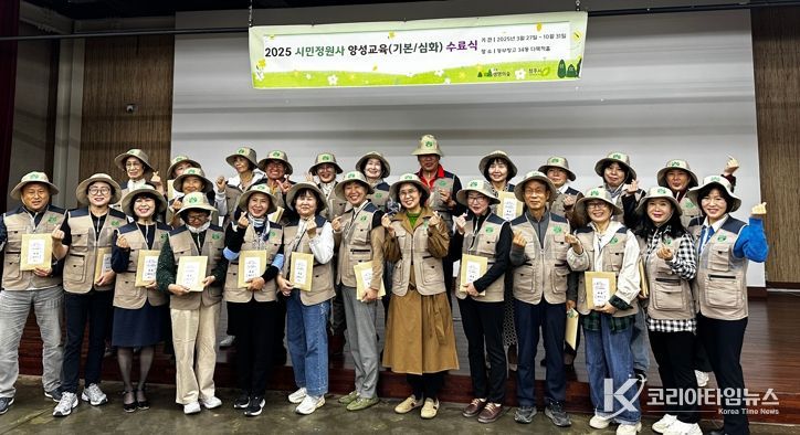 코리아타임뉴스 충북취재본부 | 청주시는 지난달 31일 상당구 내덕동 동부창고에서 ‘2025년 시민정원사 양성교육 수료식’을 열고 정원문화 확산의 주역이 될 시민정원사 29명을 배출했다.