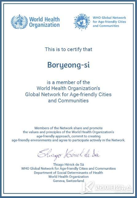 코리아타임뉴스 충남취재본부 | 보령시는 세계보건기구(WHO)가 운영하는 ‘고령친화도시 국제네트워크(Global Network for Age-friendly Cities and Communities)’에 공식 가입하며 고령친화도시로서 국제적 인정을 받았다고 밝혔다.