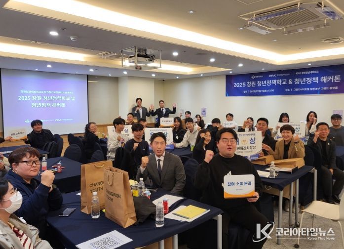 코리아타임뉴스 오영주 기자 | 창원청년비전센터는 1일 그랜드시티호텔 창원에서 열린 ‘2025 창원 청년정책학교 & 해커톤’을 성황리에 마무리했다고 밝혔다. 이번 행사는 창원 청년 네트워크가 기획했으며, 지역 청년 약 30명이 9개 팀으로 참여해 청년의 눈으로 본 현실적 정책 아이디어를 제시했다.
