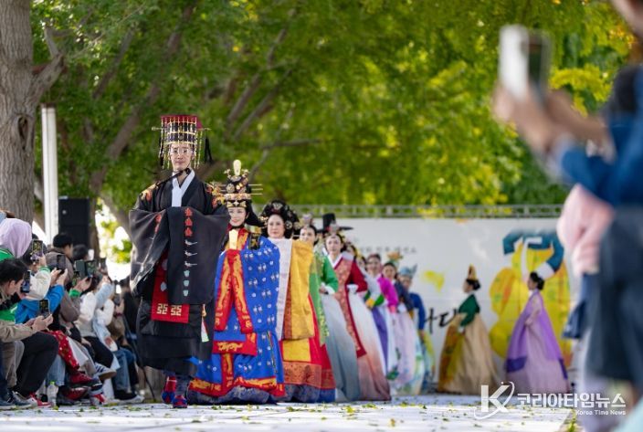 코리아타임뉴스 김택호 기자 | (재)아산문화재단은 지난 11월 2일 곡교천 은행나무길에서 장애 예술과 전통 한복이 어우러진 특별한 패션쇼 '에이블 아트 · 명화 한복 패션쇼'를 성황리에 마무리했다.
