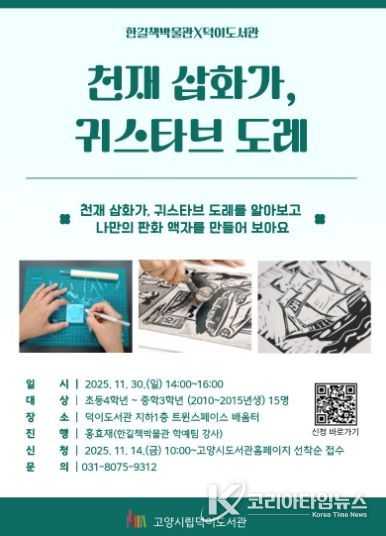 코리아타임뉴스 문화팀 | 고양특례시 덕이도서관이 오는 11월 30일 오후 2시부터 4시까지 한길책박물관과 협력해 ‘천재 삽화가, 귀스타브 도레’ 프로그램을 운영한다.