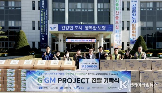 코리아타임뉴스 충남취재본부 | 보령시는 지난 3일 시청광장에서 한국지엠(주) 보령사업본부와 굿네이버스 충남서부지부와 함께한 ‘G+GM 프로젝트’ 지역사회 협력사업 물품 전달식을 개최했다.