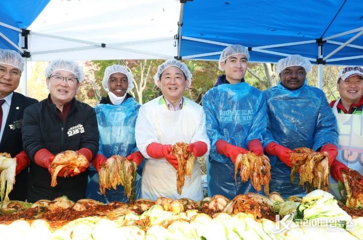 코리아타임뉴스 대전취재본부 | 대전 서구는 6일 둔산동 샘머리공원에서 열린 서구 자원봉사센터 주최‘함께하는 기쁨, 사랑 가득 김장 나눔’ 행사에 배재대학교 유학생인 정부 초청 외국인 장학생 30명이 참여했다고 전했다.