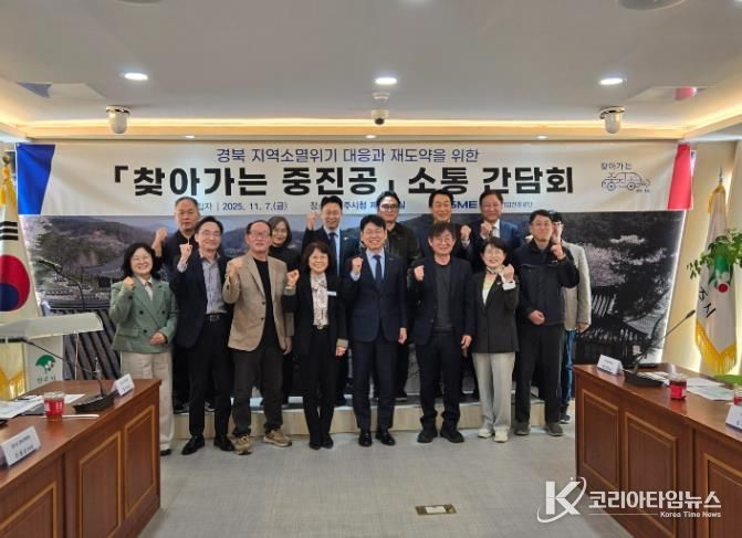 코리아타임뉴스 노승선 기자 | 영주시는 지난 7일 시청 제1회의실에서 중소벤처기업진흥공단과 함께 ‘찾아가는 중진공 현장소통 간담회’를 열고, 지역소멸위기 극복과 중소기업 재도약을 위한 해법을 논의했다.