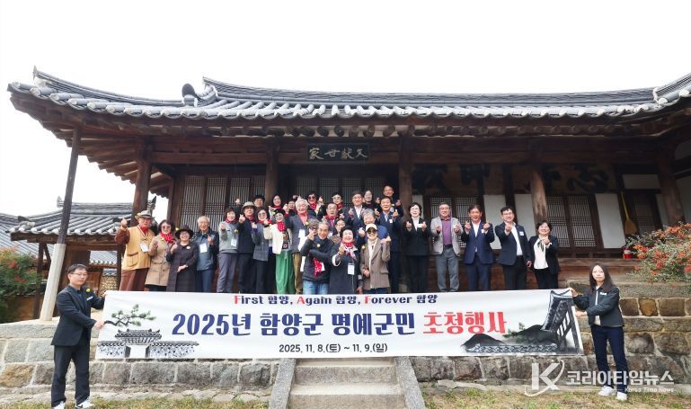 코리아타임뉴스 오영주 기자 | 함양군은 지난 11월 8일부터 9일까지 이틀간, 전국 각지에서 명예군민과 가족 25명을 초청하여 ‘2025년 함양군 명예군민 초청행사’를 성공적으로 개최했다고 밝혔다.