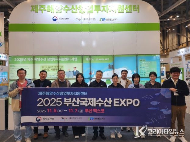 제주특별자치도와 제주테크노파크(원장 지영흔, 제주TP)는 지난 5일부터 7일까지 부산 벡스코에서 열린 ‘2025 부산국제수산엑스포’에 제주 해양수산창업투자지원센터 사업을 지원받는 제주기업 7곳과 함께 참여해 제주특산품을 홍보하는 제주공동관을 운영했다고 10일 밝혔다.
