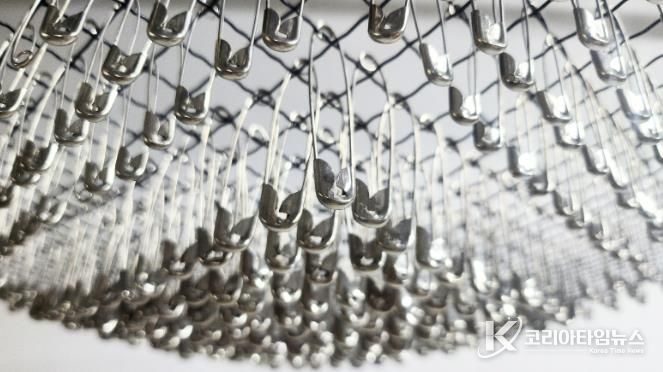 수천 개의 옷핀으로 구성된 설치 작업을 통해 ‘함께 있음’과 ‘연결의 의미’를 탐구한다.