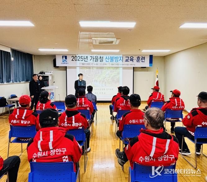 코리아타임뉴스 사회팀 | 수원특례시가 10일 공원녹지사업소 대회의실에서 가을철 산불방지 교육·훈련을 했다.
