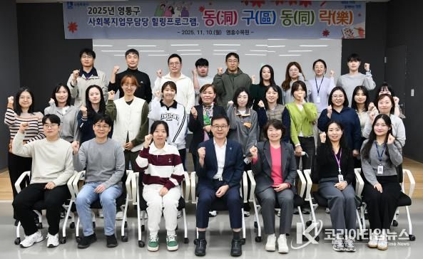 코리아타임뉴스 사회팀 | `25년 11월 10일, 영통구는 영흥수목원에서 사회복지담당 공무원 힐링 프로그램, ‘동(洞)구(區)동(同)락(樂)’을 진행했다. 이 프로그램은 과중한 업무로 인한 정서적 피로와 스트레스를 해소하고 직원들의 심신 회복을 지원하기 위해 마련됐으며, 구/동 직원 30명이 참여했다.