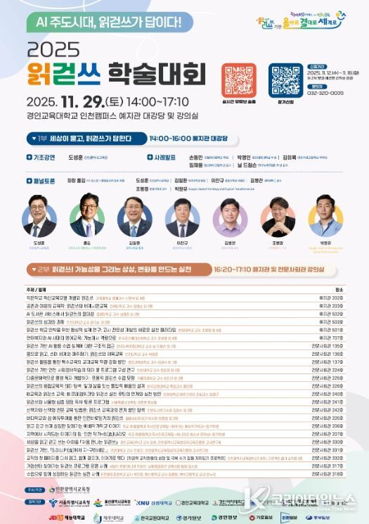 코리아타임뉴스 사회팀 | 인천광역시교육청은 11월 29일 경인교육대학교에서‘AI 주도시대, 읽걷쓰가 답이다!’를 주제로 급변하는 AI 중심 사회에서 읽걷쓰 교육의 중요성과 적용 사례를 조명하는‘2025 읽걷쓰 학술대회’를 개최한다.