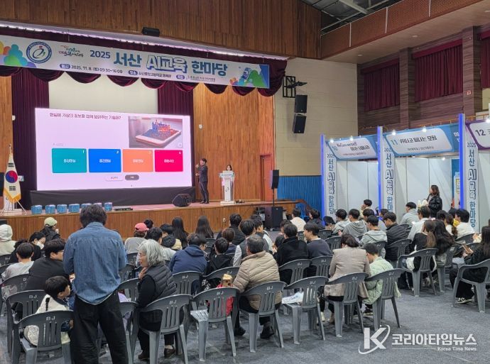 코리아타임뉴스 사회팀 | 충청남도서산교육지원청은 지난 8일 서산중앙고등학교 체육관에서 관내 초·중·고등학생과 학부모를 대상으로 인공지능교육 한마당을 개최했다.