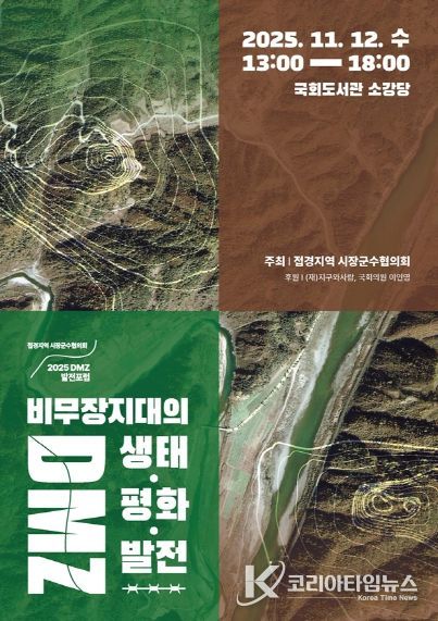 코리아타임뉴스 이아름 기자 | 접경지역시장·군수협의회는 오는 11월 12일 국회도서관(소강당)에서 “비무장지대의 생태·평화·발전”을 주제로 '2025 DMZ 발전포럼'을 개최한다. 이번 포럼은 올해 처음으로 열리는 행사로, 휴전 이후 70여 년간 소외되어온 접경지역의 조화로운 발전을 위해 필수적인 비무장지대(DMZ)에 대한 새로운 해석과 해외사례 분석을 통한 생태평화공원 조성 등 다양한 발전 방안을 제시할 예정이다.