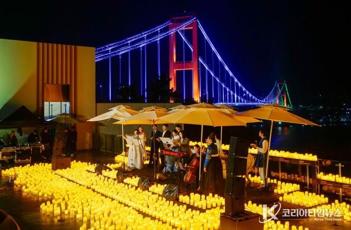 ‘남해대교 앞, 빛과 선율의 만남’을 주제로 열린 이번 공연은 늦가을 빗속에서도 많은 군민과 관광객이 함께했으며, 남해 바다를 배경으로 촛불의 따스한 분위기와 감성적인 음악이 어우러지는 낭만적인 무대가 펼쳐졌다.