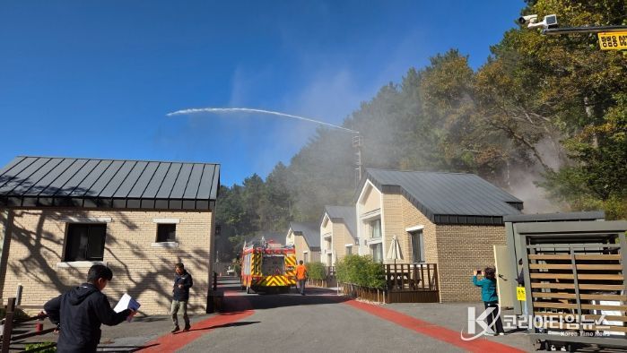 이번 모의훈련은 자연휴양림 내 화재발생 시 유관기관과의 협조체계를 유지하여 초기 대응 역량을 강화하기 위한 훈련으로, 화재신고, 이용객 긴급대피, 소방타워 가동, 화재진압, 산불방화선 구축 등 실제 화재 상황 방불케 하는 실전 훈련을 진행했다.