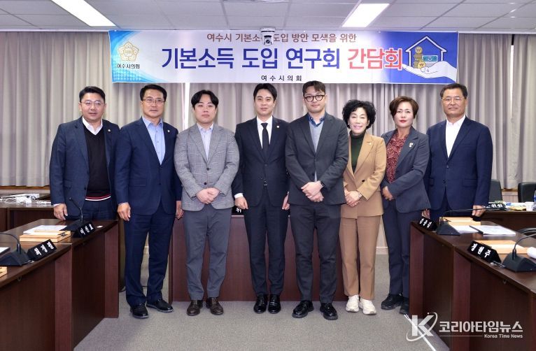 코리아타임뉴스 전남취재본부 | 여수시의회 기본소득 도입 연구회(대표의원 이석주)는 11월 11일, 여수시의회 운영위원회 회의실에서 『여수형 기본소득(사회) 조례 정비 연구용역 중간보고회』를 개최했다.