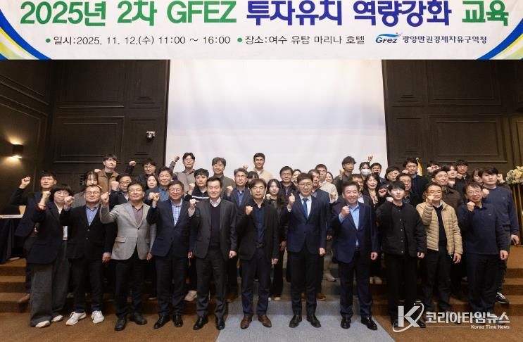 코리아타임뉴스 전남취재본부 | 광양만권경제자유구역청은 11월 12일 여수 유탑마리나호텔에서 직원 70여 명이 참석한 가운데 ‘2025년 하반기 투자유치 역량강화 교육’을 실시했다고 밝혔다.
