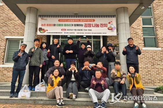 코리아타임뉴스 오영주 기자 | (사)김해시농촌공동체활성화협의회는 지난 8일 진영읍 더봉하센터에서 ‘2025년 농촌돌봄이와 더봉하동아리가 함께하는 김장나눔 잔치’를 열어 어르신과 발달장애인 가족을 초청해 따뜻한 나눔을 실천했다고 12일 밝혔다.
