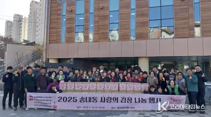 코리아타임뉴스 경기취재본부 | 동두천시 송내동 행정복지센터는 지난 12일 새마을부녀회 주관으로 송내동 지역사회보장협의체와 경기도사회복지공동모금회의 후원을 받아 ‘사랑의 김장 나눔’ 행사를 성황리에 마쳤다.