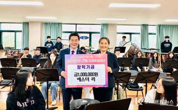 코리아타임뉴스 전북취재본부 | 부안군근농인재육성재단은 지난 8일 재독일 성악가 에스더 리가 부안초등학교 관현악단의 초청 방문 중 부안군근농인재육성재단에 장학금 100만원을 기부했다고 밝혔다.