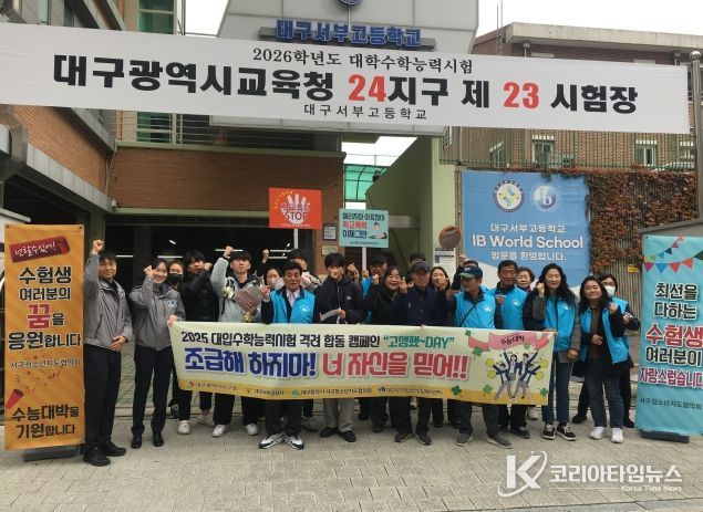 코리아타임뉴스 대구취재본부 | 대구 서구 청소년지도협의회(회장 황만태)는 지난 12일, 서부고등학교 정문에서 학생들의 수능 예비 소집일 시간에 맞춰 수험생 응원 및 선도·보호 합동 캠페인을 실시했다.