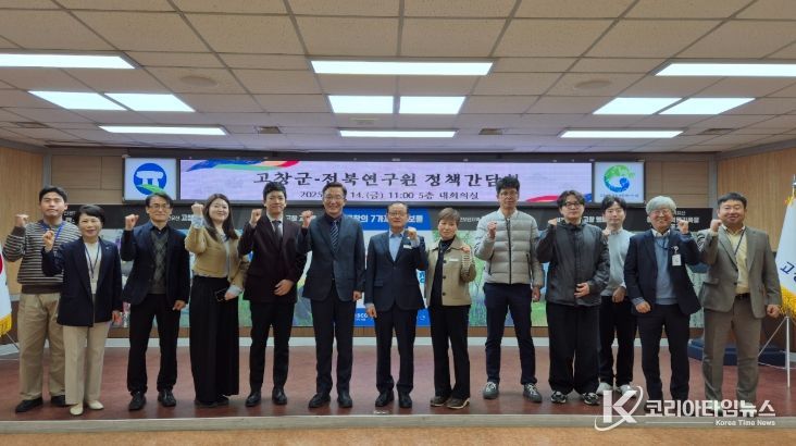 코리아타임뉴스 전북취재본부 | 고창군과 전북연구원이 지난 14일 고창군청 5층 대회의실에서 양 기관 관계자들이 참석한 가운데 정책간담회를 개최했다.