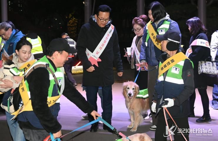 코리아타임뉴스 이아름 기자 | 연수구는 지난 18일 반려견 순찰대(일명 연수지킴댕댕이), 연수2동·동춘3동 자율방범대, 인천경찰청 기동순찰대 등 50여 명이 참여한 ‘민·관·경 야간 합동 순찰’을 진행했다.
