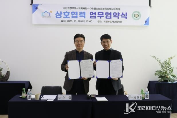 코리아타임뉴스 기동취재팀 | 의정부도시교육재단은 지난 11월 18일, 사단법인 청소년문화공동체 십대지기와 위기청소년을 조기에 발굴하고 지원하기 위한 업무협약(MOU)을 체결했다.