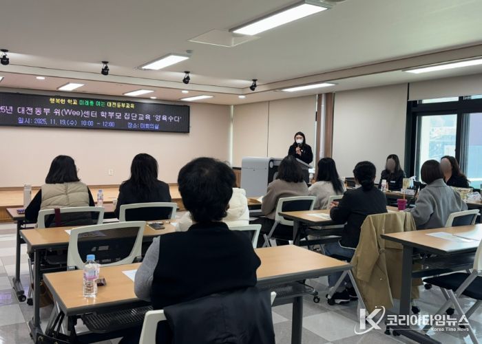 코리아타임뉴스 사회팀 | 대전동부교육지원청은 11월 19일 본관 대회의실에서 동부 관내 초·중학교 학부모를 대상으로 자살 예방 리터러시 부모 교육 『양육 수다』를 운영했다고 밝혔다.