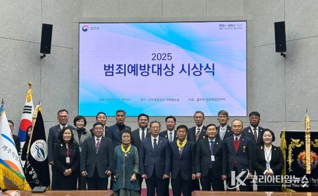 코리아타임뉴스 노승선 기자 | 제주특별자치도가 도민 참여형 범죄예방 정책의 우수성을 인정받아 법무부 주관 ‘2025 범죄예방대상’ 국무총리 표창을 19일 받았다.