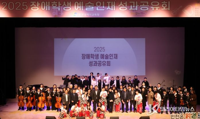 코리아타임뉴스 사회팀 | 인천광역시교육청은 19일 청라 블루노바홀에서 학생·학부모·교직원·시민 등 350여 명이 참석한 가운데 ‘2025 장애학생 예술인재 성과공유회-예술로, 잇다’를 개최했다.