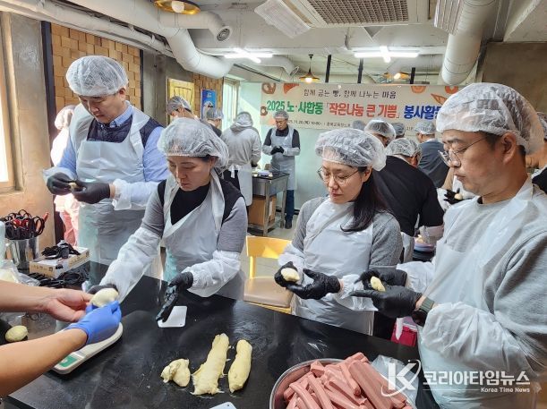 코리아타임뉴스 사회팀 | 충북교육청노동조합 진천지부와 진천교육지원청은 11월 20일 진천교육지원청에서 ‘노․사합동 사랑의 빵 만들기 봉사활동’을 실시했다.