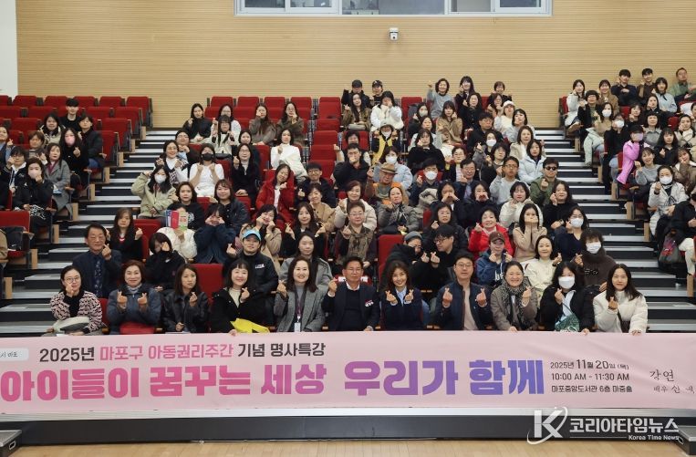 코리아타임뉴스 노승선 기자 | 마포구는 11월 20일 오전 10시, 마포중앙도서관 마중홀에서 배우 신애라를 초청해 2025년 아동권리주간 기념 명사특강을 개최했다.