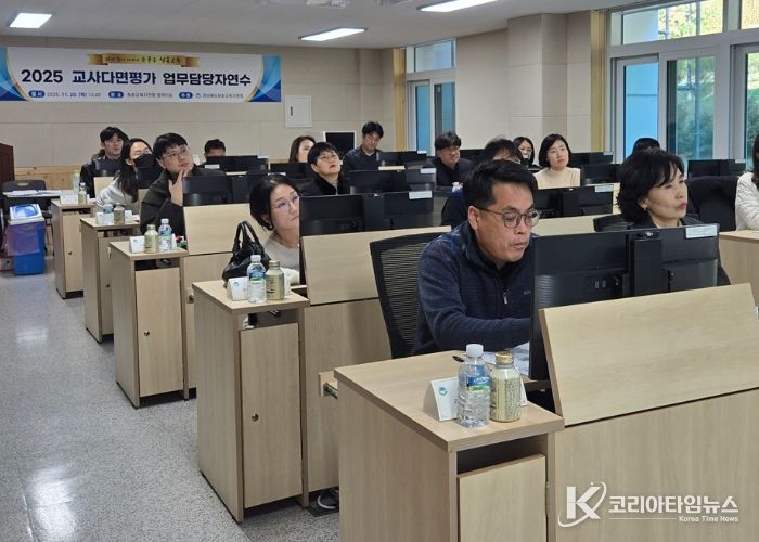 코리아타임뉴스 사회팀 | 경상북도청송교육지원청은 11월 20일 13시 20분 교육지원청 컴퓨터실에서 관내 유·초·중·고 다면평가 업무 담당자 22명을 대상으로 '2025학년도 교사 다면평가 업무 역량 강화 연수'를 실시했다.