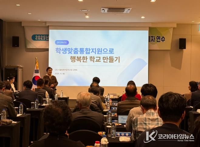 코리아타임뉴스 사회팀 | 예천교육지원청은 2025년 11월 19일 오후 1시에 스탠포드호텔 안동에서 관내 초·중·고등학교 교장 및 학생맞춤통합지원 업무 담당 교사 47명이 참석한 가운데 ‘2025년 하반기 학생맞춤통합지원 체계 구축 사업 업무 관계자 연수’를 실시했다.