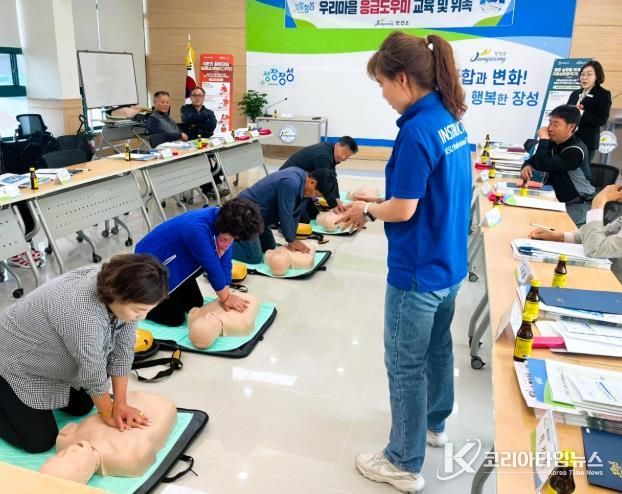 코리아타임뉴스 노승선 기자 | 장성군이 최근 ‘우리 마을 응급도우미’ 양성 과정을 마무리하고, 교육을 이수한 마을 이장 245명을 ‘응급도우미’로 임명했다.