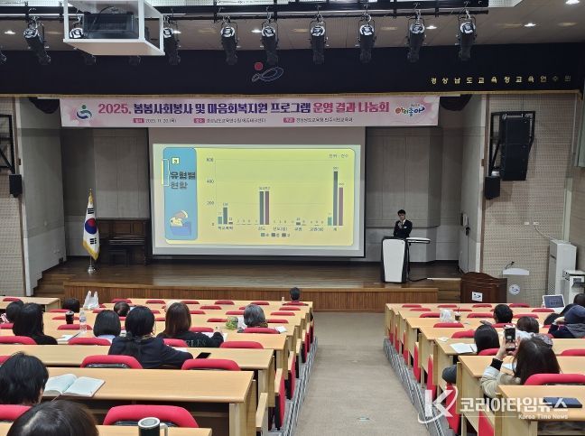 코리아타임뉴스 사회팀 | 경상남도교육청은 20일 경상남도교육청 교육연수원에서 ‘봄봄 사회봉사 프로그램’과 ‘마음 회복 지원 프로그램’ 운영 성과를 공유하는 결과 나눔회를 개최했다.