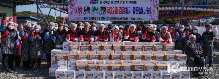 코리아타임뉴스 노승선 기자 | 한국여성농업인 영천시연합회는 20일 금호읍 대현사에서 ‘2025년 사랑의 김장김치 담그기 및 나눔 행사’를 진행했다.