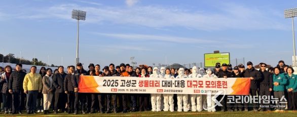 코리아타임뉴스 경남취재본부 | 고성군은 군민의 생명과 안전을 지키기 위해 2025년 11월 20일 고성군종합운동장에서 ‘2025년 생물테러 대응 대규모 모의훈련’을 성공적으로 실시했다고 밝혔다.