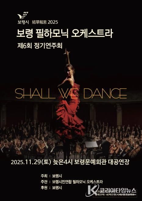코리아타임뉴스 충남취재본부 | 보령시민연합 필하모닉 오케스트라가 오는 11월 29일 오후 4시 보령문화예술회관 대공연장에서 제6회 정기연주회 ‘Shall We Dance’를 개최해 시민들에게 특별한 음악적 감동을 선사한다.