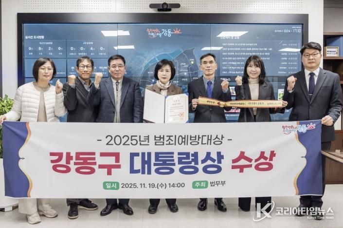 코리아타임뉴스 노승선 기자 | 서울 강동구가 ‘2025년 범죄예방대상’에서 전국 지방자치단체 최고 성과인 대통령 표창을 수상했다고 21일 밝혔다.