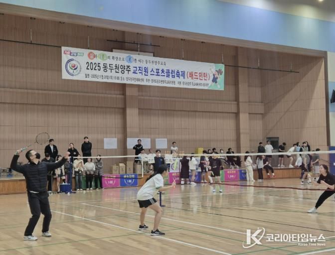 코리아타임뉴스 사회팀 | 동두천양주교육지원청는 11월 20일, 동두천국민체육센터에서 관내 초·중·고 34개 학교 교직원 218명이 참여한 ‘2025년 동두천양주 교직원 스포츠클럽축제 배드민턴 경기’를 개최했다. 이번 행사는 교직원의 건강 증진과 더불어 학교 간 소통과 협력을 강화하기 위해 마련됐으며, 다양한 클럽이 참여해 활기찬 경쟁과 화합의 시간을 만들어냈다.