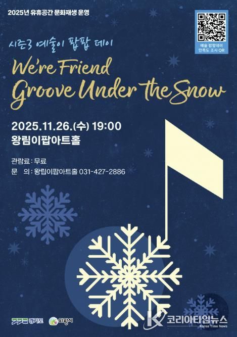 윤은숙 의왕시 문화관광과장은 “We’re Friend의 이번 무대는 탭댄스와 재즈가 결합한 독창적인 공연으로, 겨울의 감성을 풍성하게 채워줄 것”이라며 “음악의 따뜻함과 생동감 넘치는 리듬을 현장에서 함께 즐겨주시길 바란다”고 전했다.
